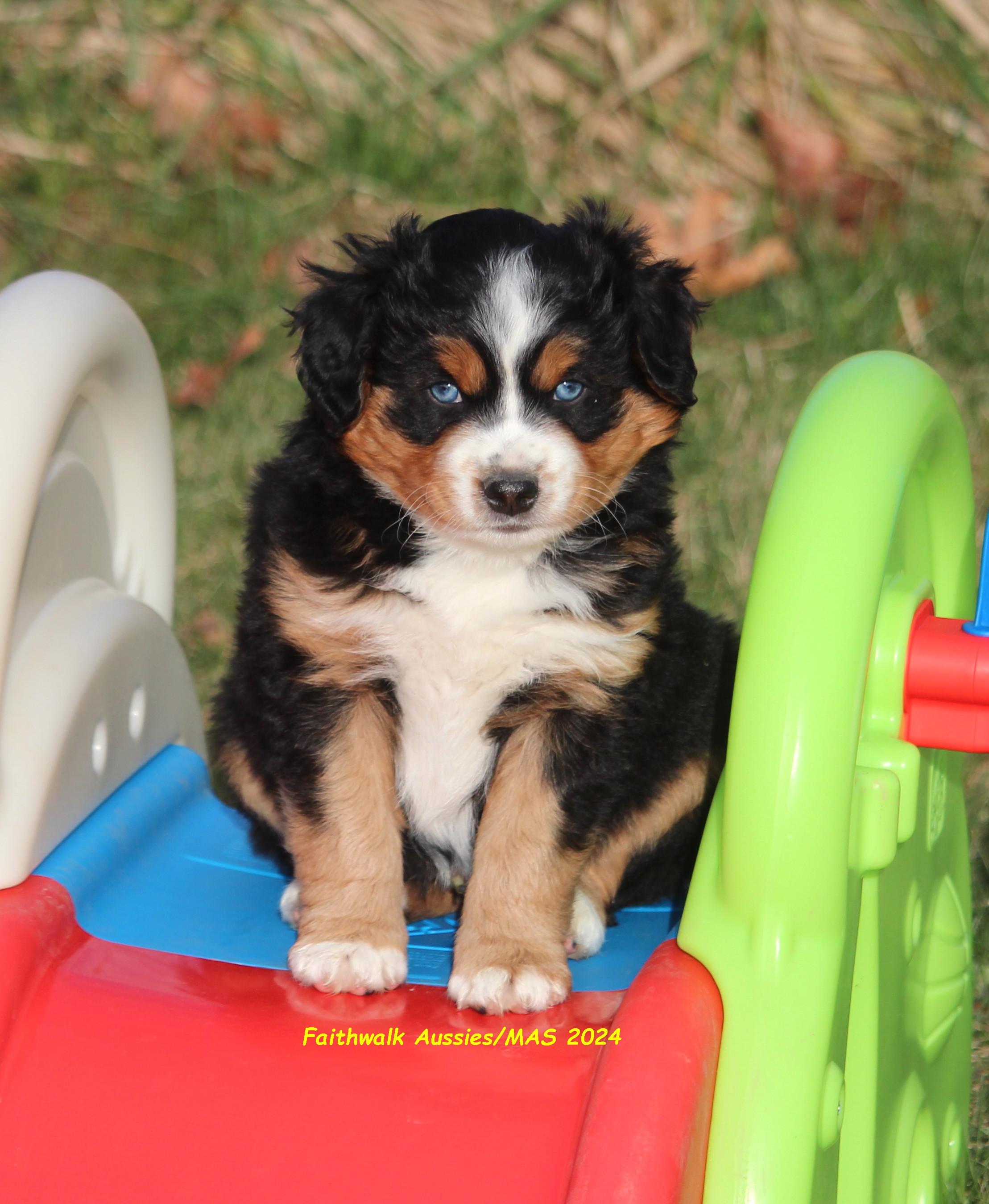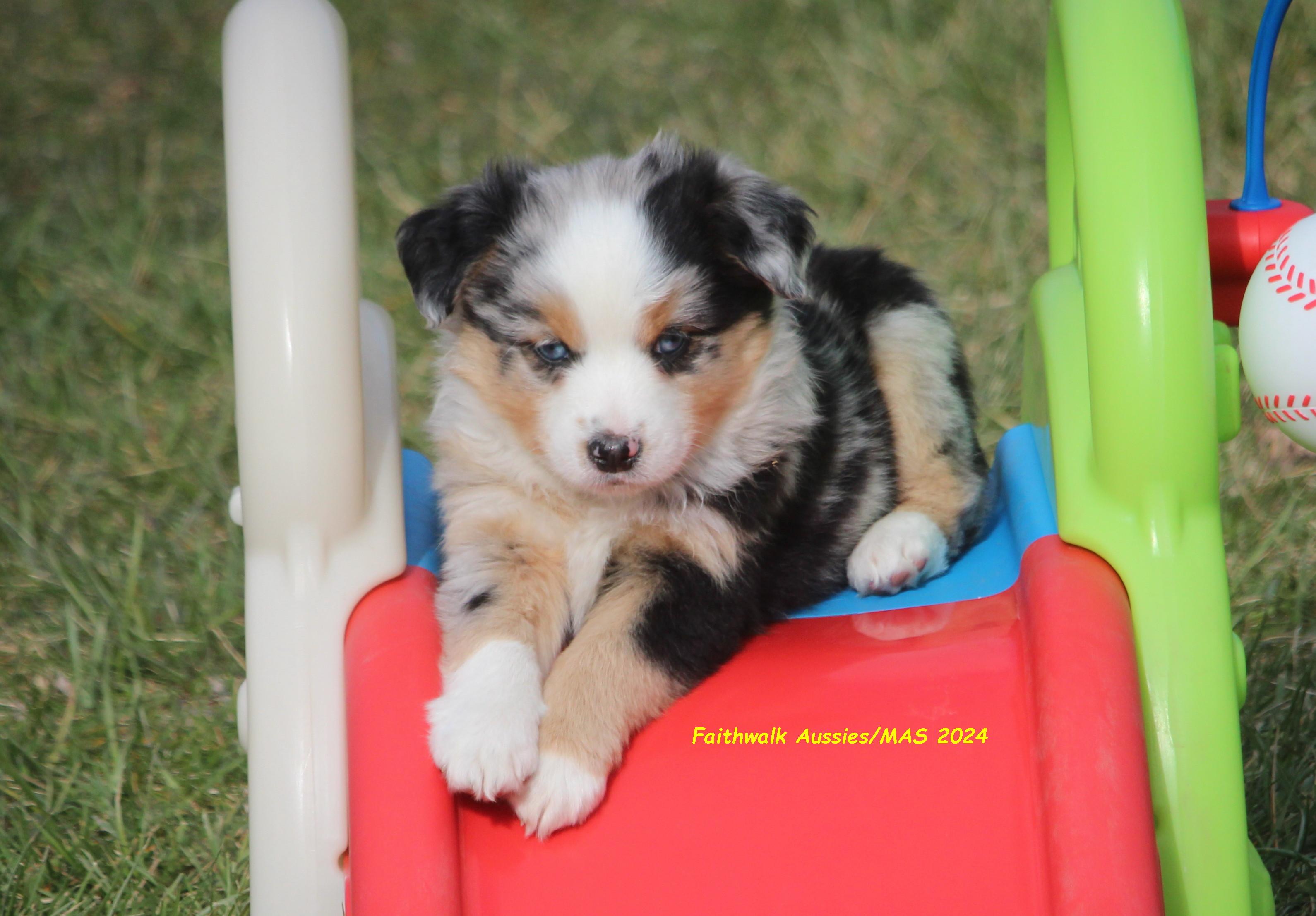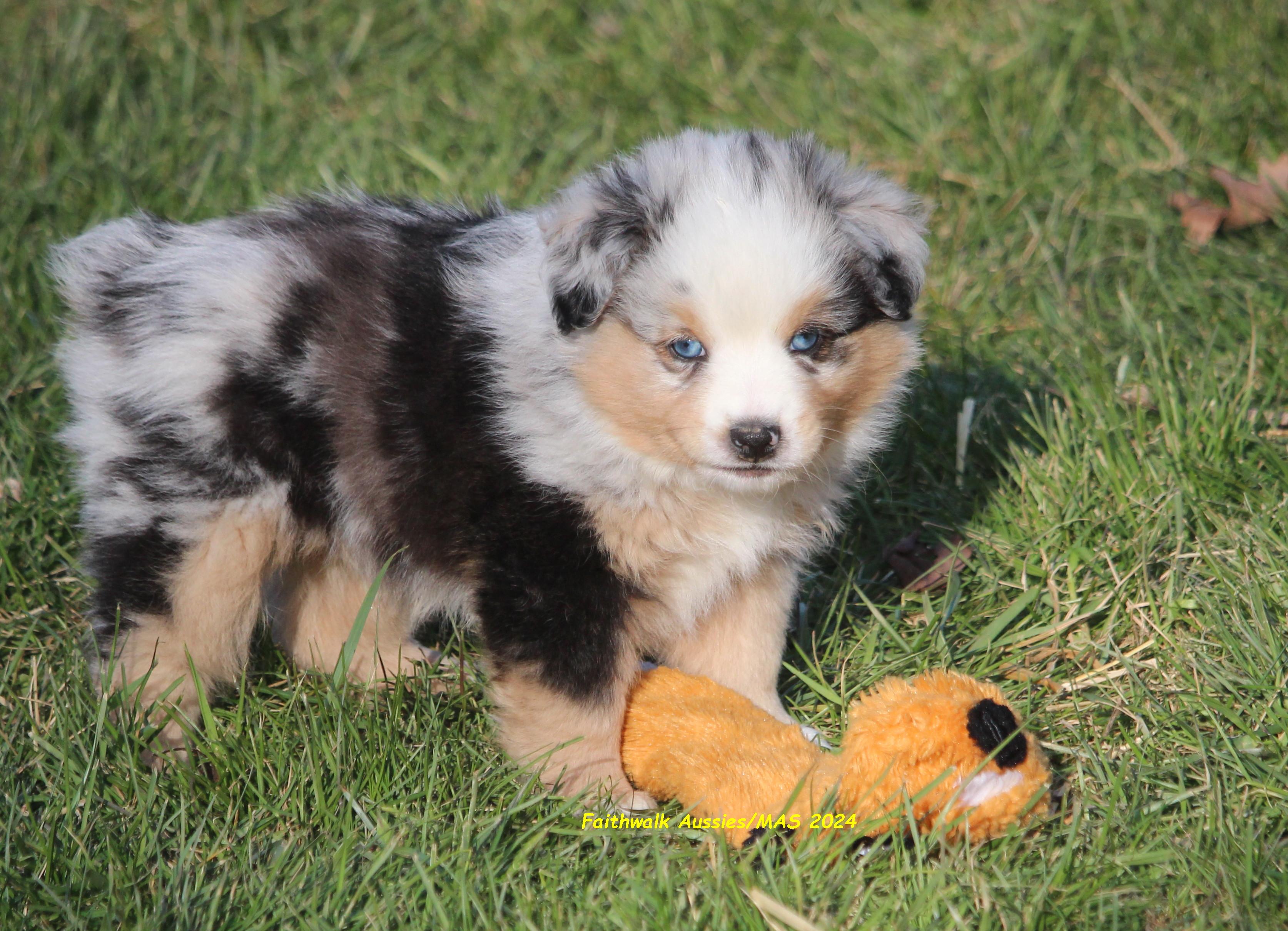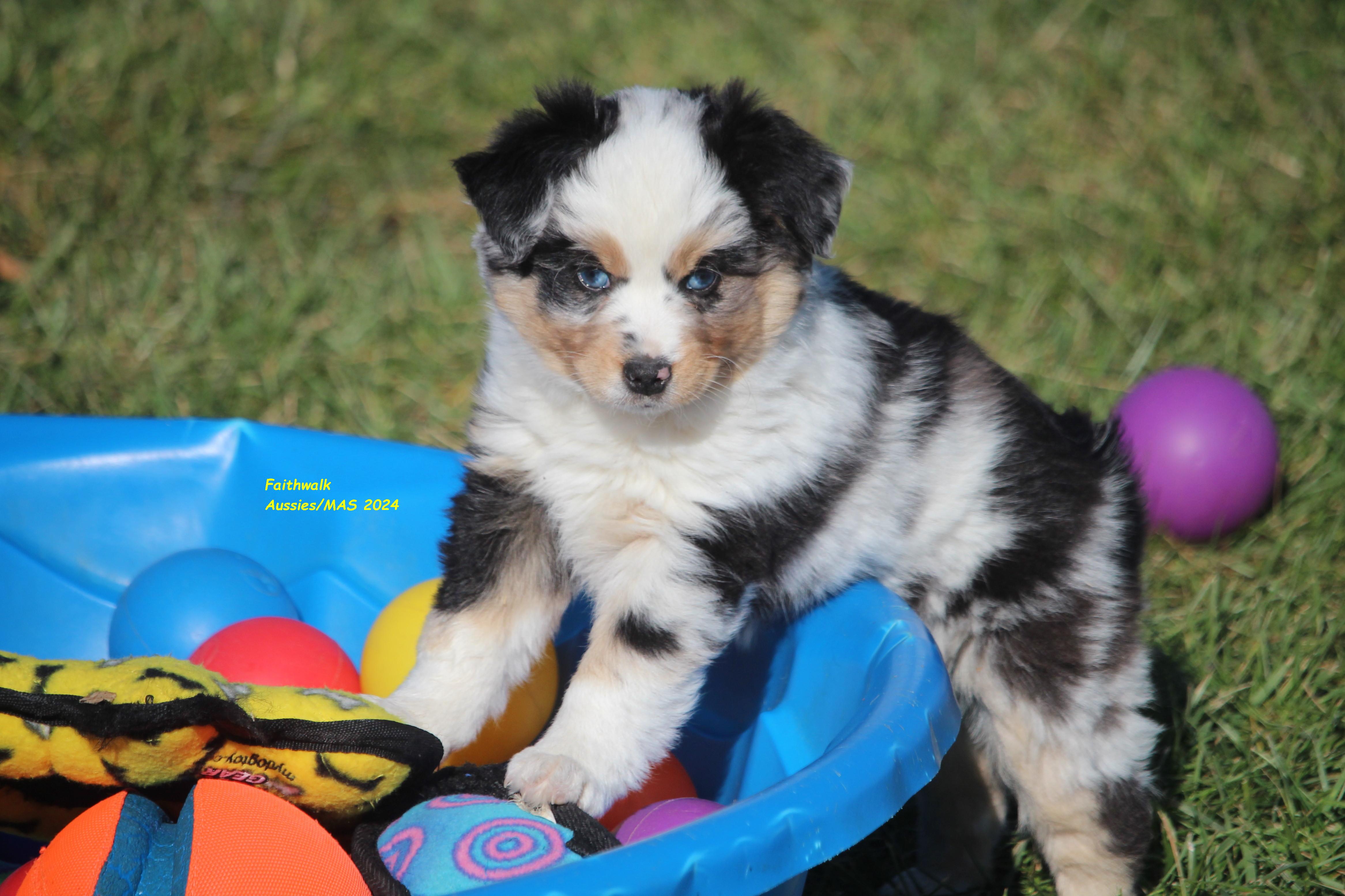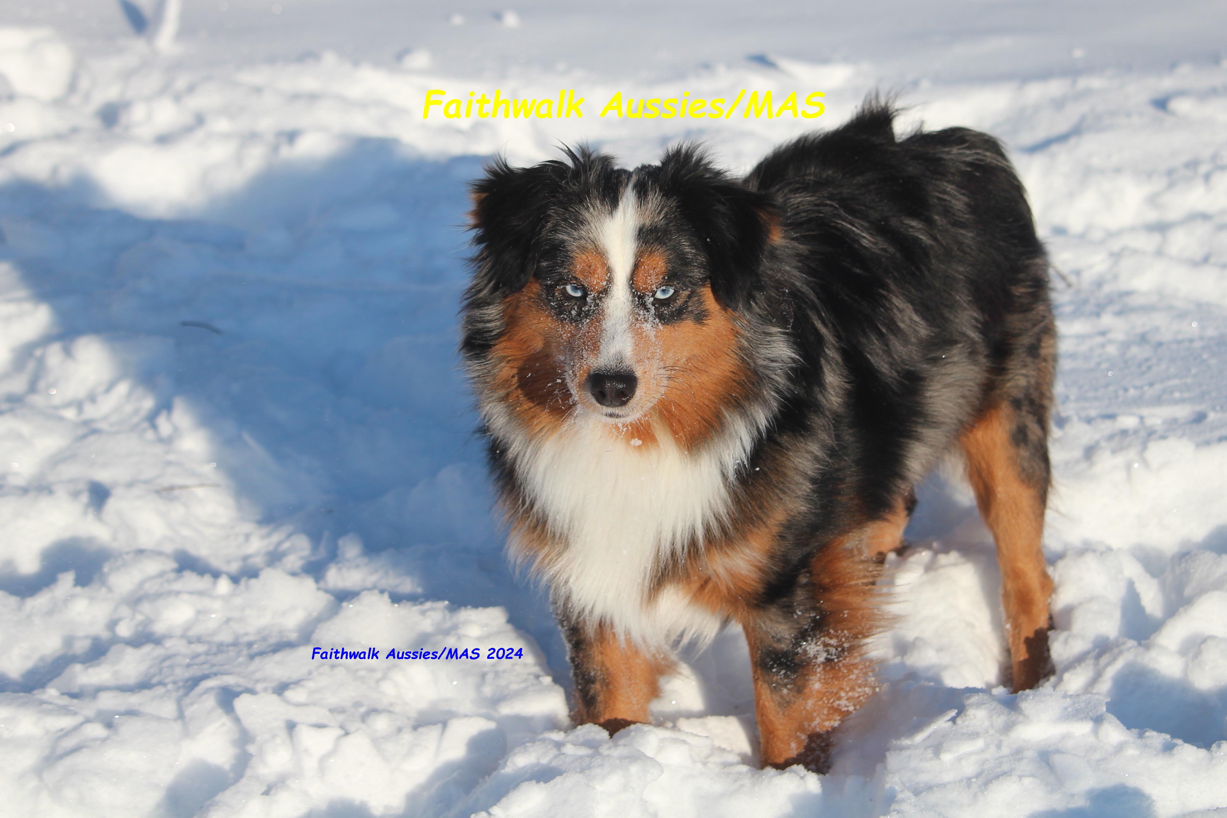 I'm Jill P., the breeder behind Faithwalk Aussies and Mini American Shepherds located in Hillsdale, MI. My Aussies and Miniature American Shepherds are an integral part of the family and I strive to give them an excellent quality of life, with optimal diet and health care, lots of fun doggy things to do, and plenty of individual attention