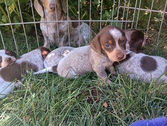 Our puppies include piebald, fawn (isabella) and cream, and chocolate and tan. Colors will vary depending on the parent dogs.