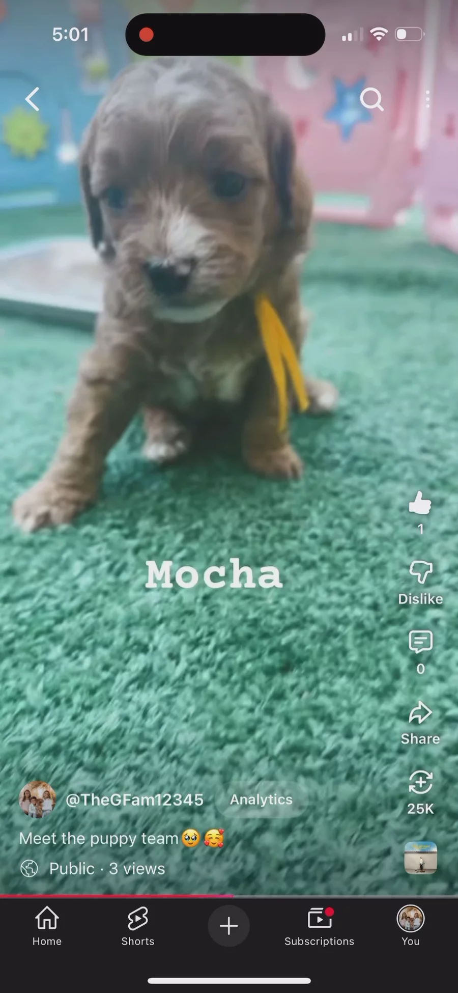 The kids joined in the fun and made this video of the puppies yesterday! They are now 4 weeks old and we are starting potty training and introducing solid food.