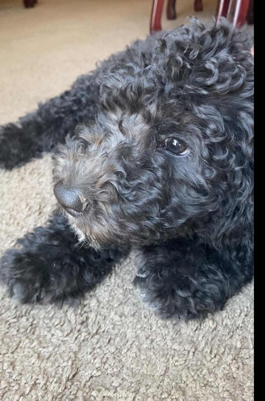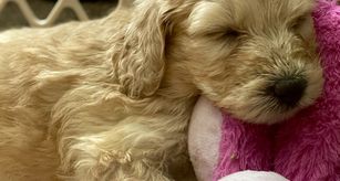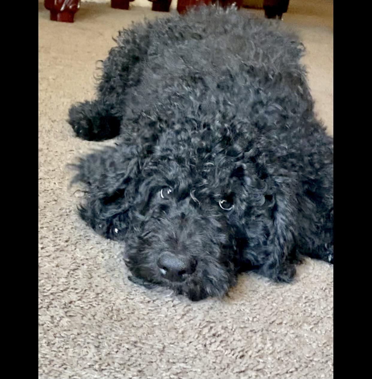 My husband has PTSD. We got Jewels as a companion and emotional support animal to him. He's allergic to her, so it's hard on him and his allergies. We got a poodle to keep her company, as they are hypoallergenic. We hadn't planned on mating them, but they did during obedience school, and here we are! It has been a journey, and we are so happy to share these wonderful dogs with other loving families and individuals.