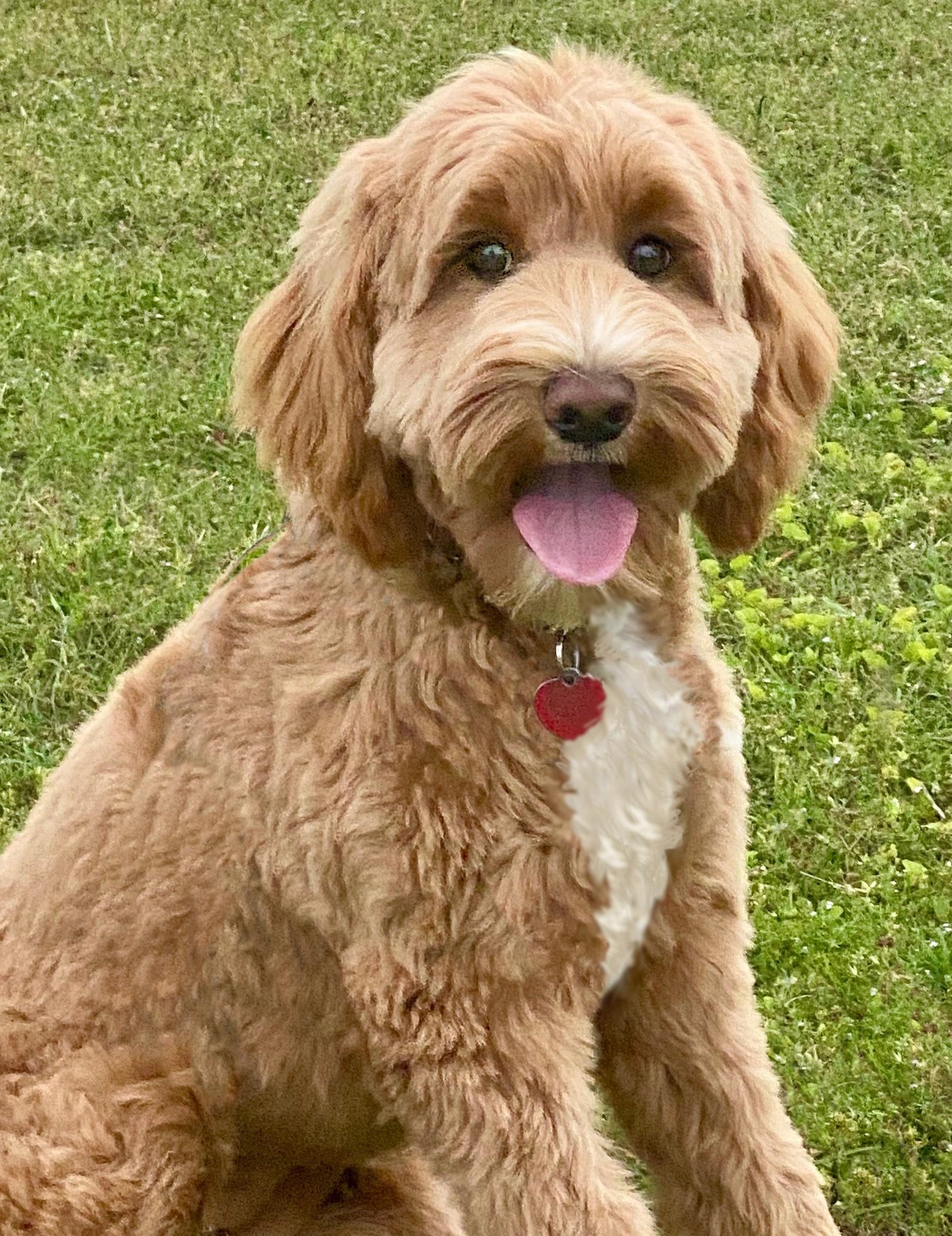 Tulip is a Australian Labradoodle. Carefully selected as a great representative of their breed, Mary & Robert decided to make them part of their program. Mary & Robert has passed Good Dog’s screening process, which involved a review of their breeding practices, environment, and the mental and physical health of their dogs.