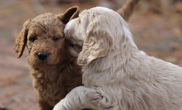 Our Australian Labradoodle puppies include caramel, apricot, chocolate, and black. Goldendoodle puppies include cream and apricot. Colors will vary depending on the parent dogs.