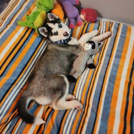 Rocket is a male Pomsky. Carefully selected as a great representative of his breed, Michelle decided to make him part of their program. Michelle has passed Good Dog’s screening process, which involved a review of their breeding practices, environment, and the mental and physical health of their dogs.