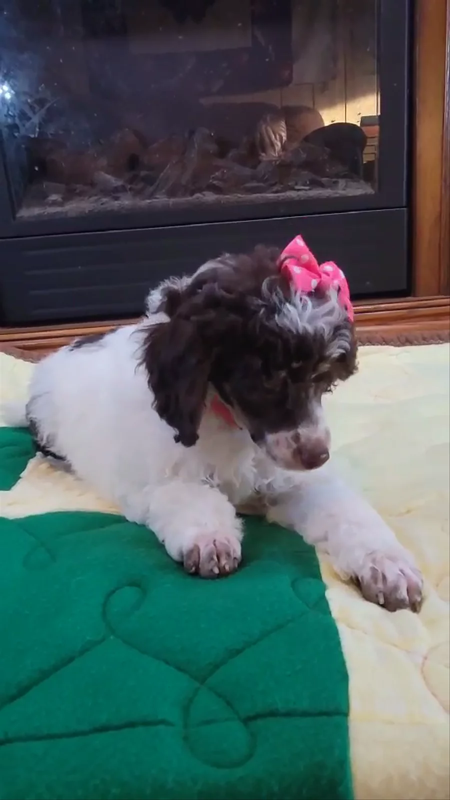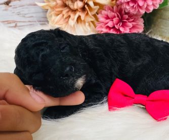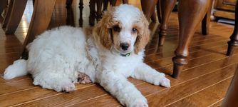 Elizabeth was out of town when we got our fur baby, her sister Mary presented her to us..she was a 8 week old miniature poodle now she is 10 weeks old..she is a character loves to play, loves cuddles, but also loves to chew and bite it feet and hands trying to get that taken care of kind of hard to do