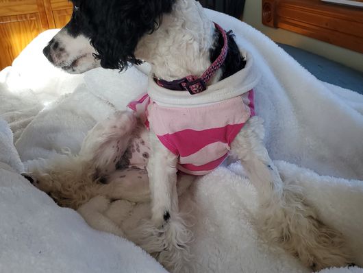 She’s been doing great, she has a small problem with peeing on her legs and chasing kids. I expected her to be nervous on the first night but she surprised us and was playful the second she got here. She came with plenty of food that lasted roughly 3 weeks.