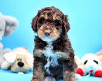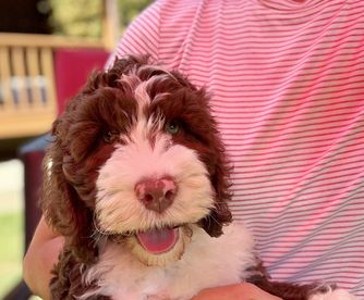 Stacia with Family Raised Doodles was so great. She sent me lots of videos of Winston’s training progress. Very professional and pleasant experience. I looked at breeders in Virginia and North Carolina, but Stacia’s litter had the best markings of any breeder I found. Winston is the most chill puppy I have ever met. He sleeps at my feet while I work from home but is ready to play when I have breaks between meetings. I live in an apartment and he learned which unit was mine on day 2 and now runs to the door and sits and waits for me to catch up (always sits until I allow him inside). He’s extremely social and well mannered. I could not have asked for a better experience. Thank you Stacia!!