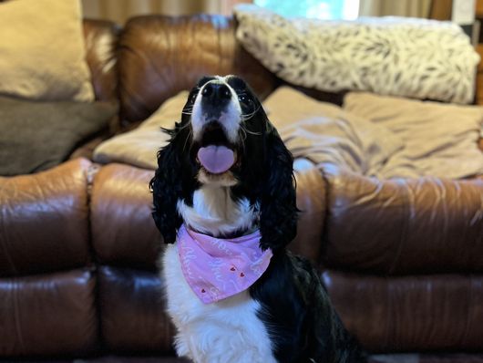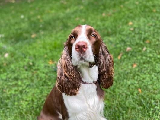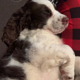 Max is a male English Springer Spaniel. Carefully selected as a great representative of his breed, Stacia decided to make him part of their program. Stacia has passed Good Dog’s screening process, which involved a review of their breeding practices, environment, and the mental and physical health of their dogs.
