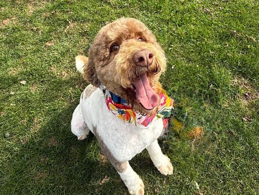 Patrick is a super sweet, Moyen Poodle. He is brown/white/tan parti Poodle that weighs 40lbs