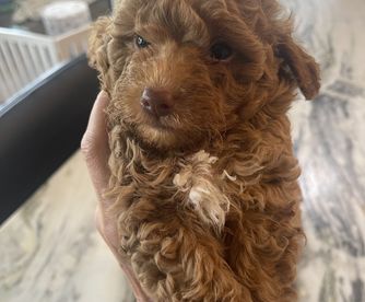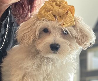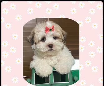 Our Maltipoo puppies include apricot, cream, red, and champagne. Shichon puppies include black and white and brown and white. Poodle puppies include apricot, red, and white. Colors will vary depending on the parent dogs.