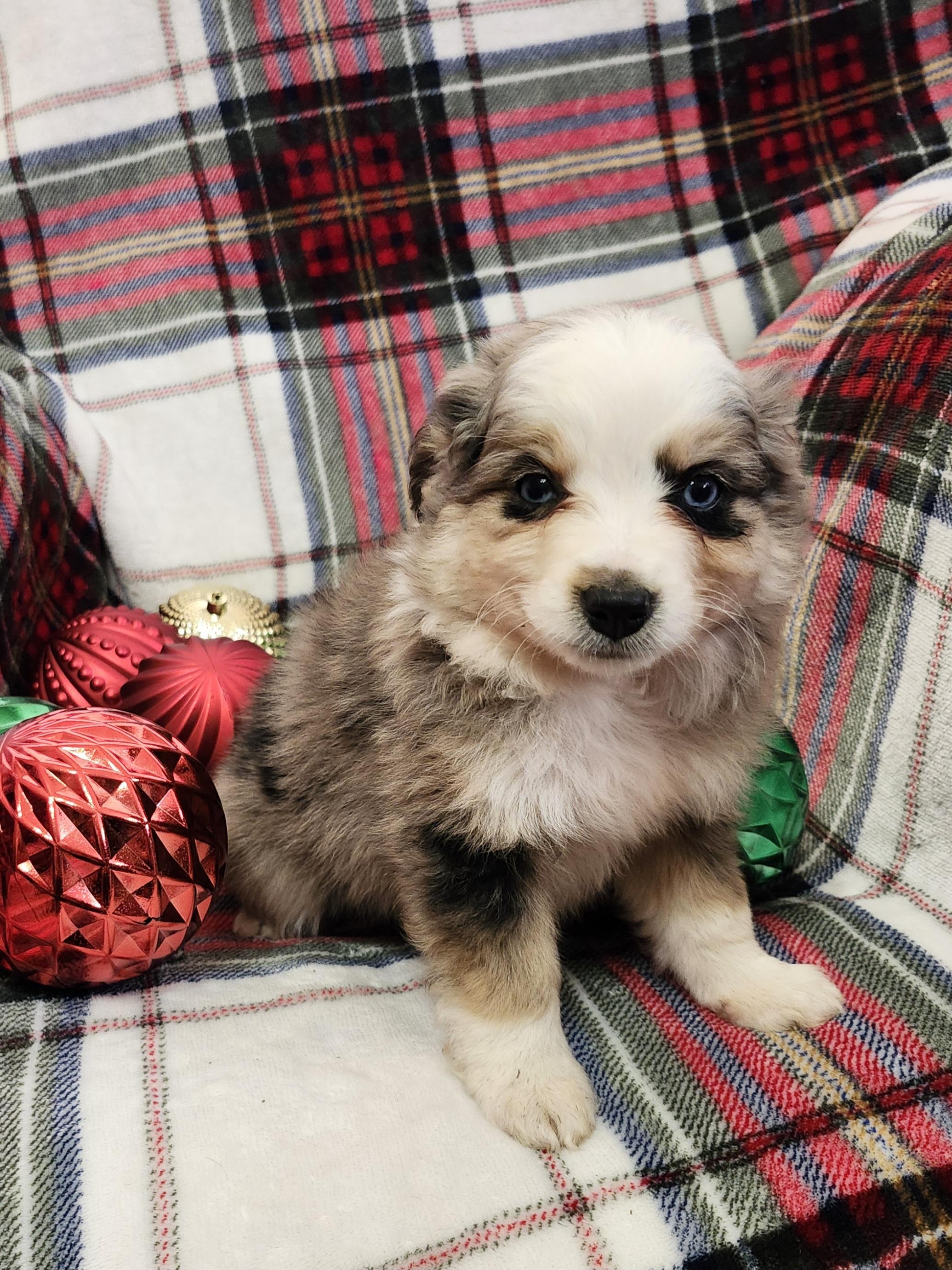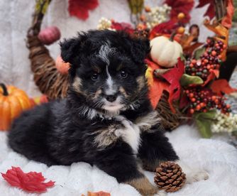 Our Labradoodle puppies are standard size. Miniature Australian Shepherd puppies are miniature size. Sizes will vary depending on the parent dogs.