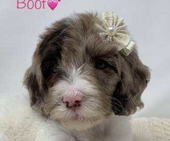 Our puppies include cream, chocolate, merle, and parti. Colors will vary depending on the parent dogs.
