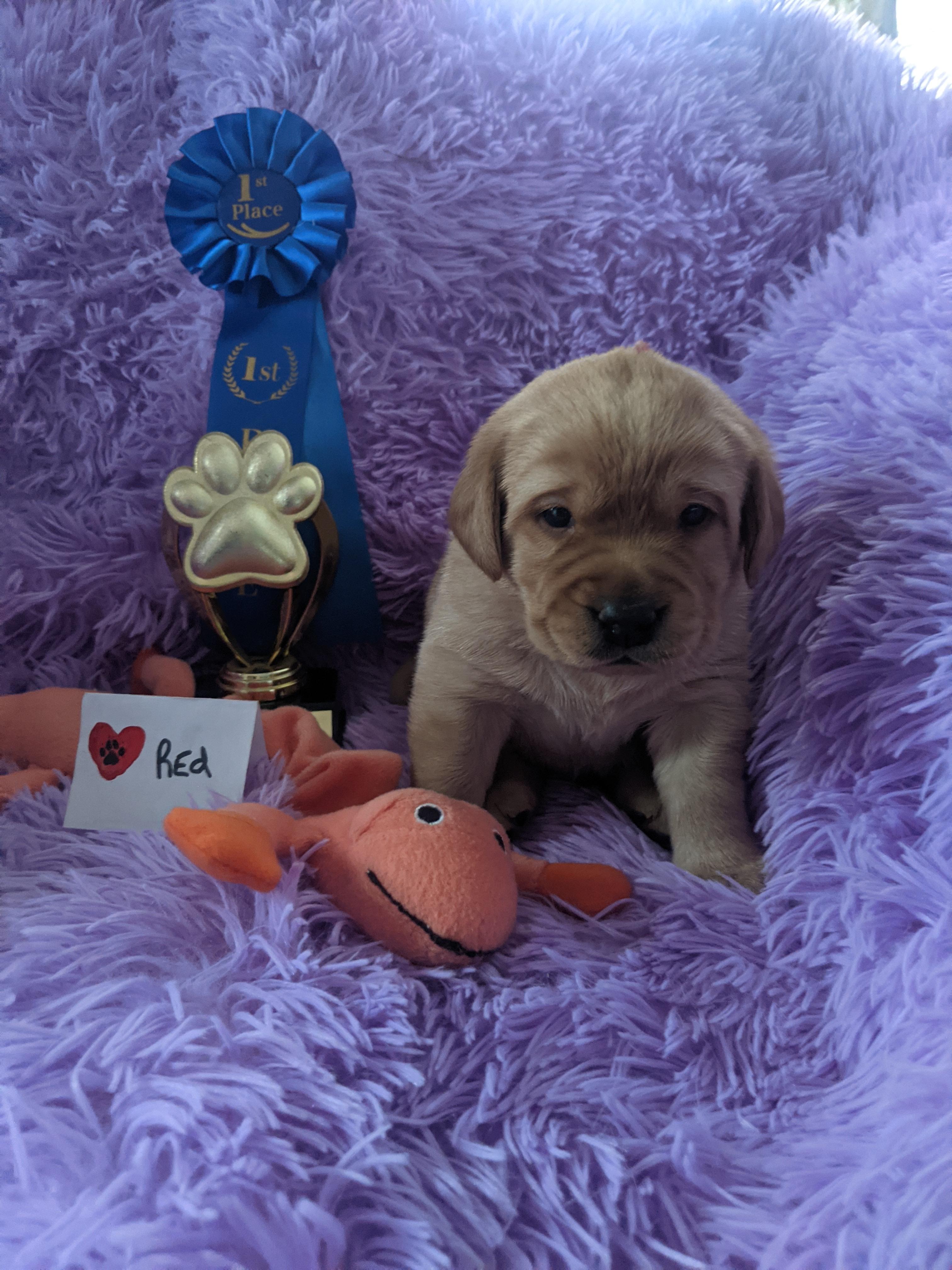 KC is a laid back lab She is fox red in color. She has her eyes heart hip and elbows along with genetic DNA testing done. She also has her Good Canine Citizen and her Farm Dog titles