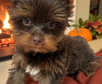 Our Yorkshire Terrier puppies include liver, chocolate, tan and white, chocolate and tan, parti, blue and gold, and black and tan. Colors will vary depending on the parent dogs.