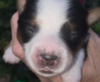 Latte is a loyal girl that loves to sleep in her momma's bed. She is super fast and loves to play tag with the other dog. She interacts nicely with her siblings. She has a beautiful face and soft fur.
