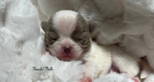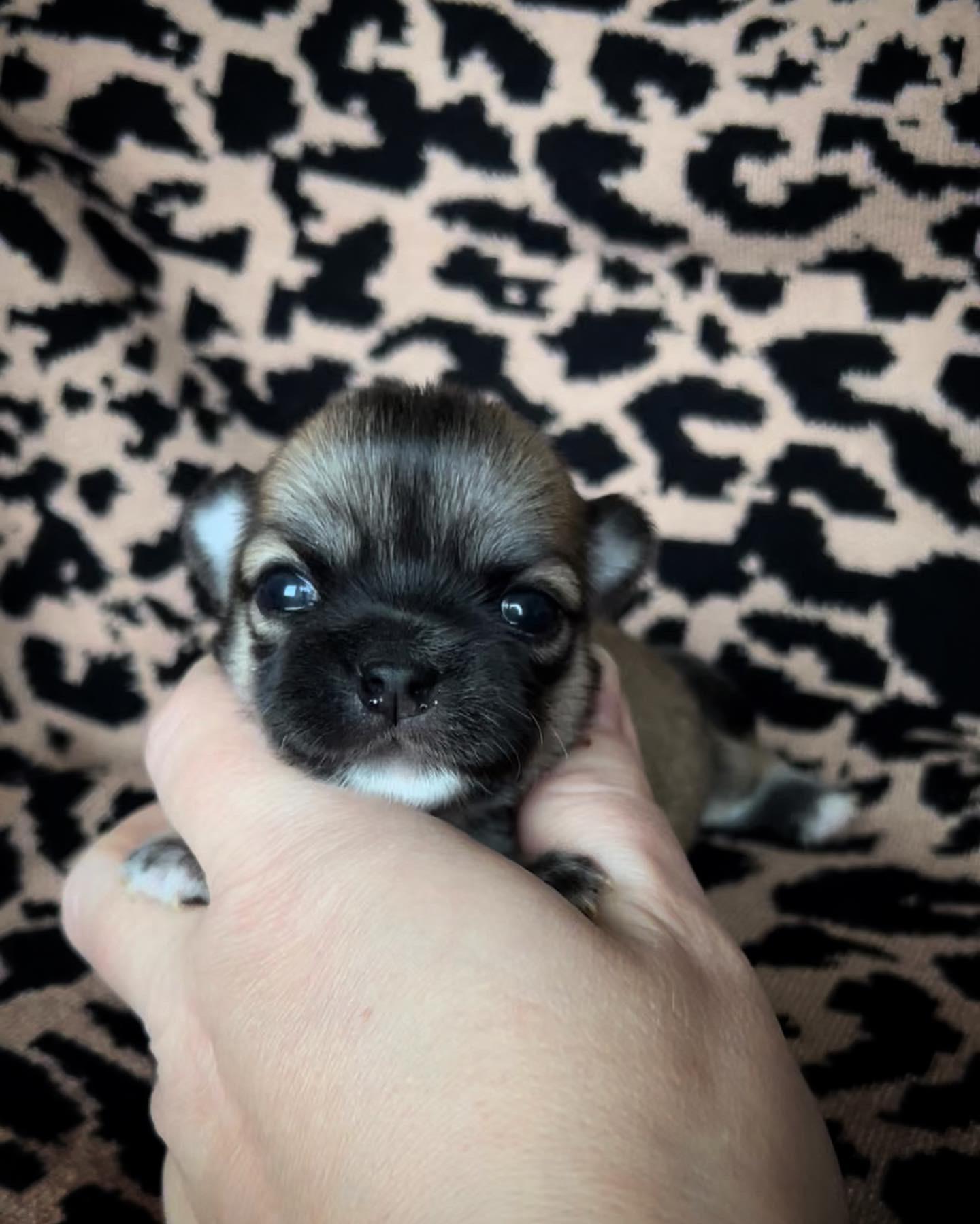 This gorgeous boy has the best temperament as well as a wonderful example of the breed standard. Championed recently and passed all health testing. Fawn on White Smooth. Compact and approximately 4 lbs. I’m extremely blessed to have this boy in my program.