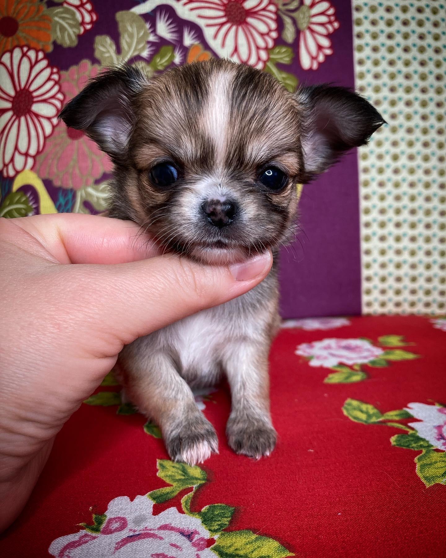 It all started with a chorkie we had many years ago. We then found a chihuahua and a yorkie and we fell in love with both the purebreeds. We eventually focused on our primary love for chihuahuas. We are obsessed with large round eyes. Beautiful muzzles and her variety of color and coat type this breed has. No two chihuahuas appear the same in our opinion.