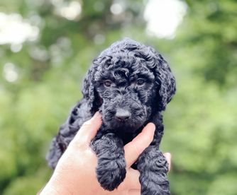 Our Poodle puppies are phantom. Goldendoodle puppies include cream and black. Colors will vary depending on the parent dogs.