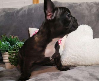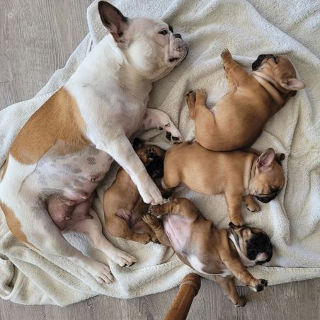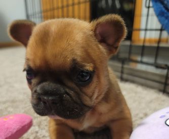 I'm Jennifer S., the breeder behind Fancy Frenchies located in Iowa. We’re devoted to ensuring these babies are healthy and we do so by responsibly growing, training and socializing them from the start in our home! The foundation of our breeding program starts with raising healthy and well-loved dogs.