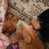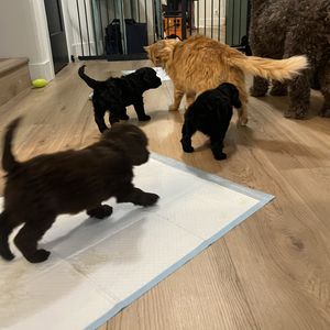 My mom breeds English cream Golden Retrievers and Australian Labradoodles. I have been working with her from whelping to puppy raising for the past 16 years. We started our program 6 years ago but our first few dogs failed health testing so we had to start over.