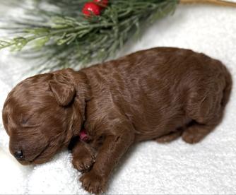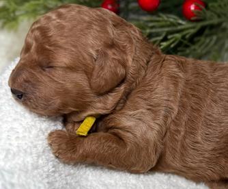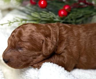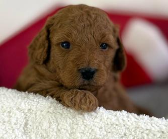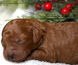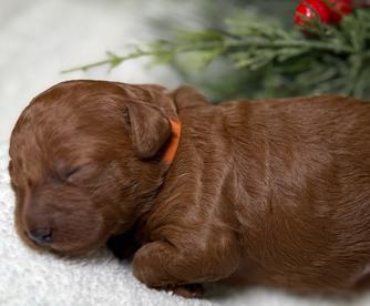 Our Poodle puppies are red. Goldendoodle puppies include apricot and red. Colors will vary depending on the parent dogs.