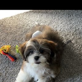 Finley is a male Shih Tzu. Carefully selected as a great representative of his breed, Debbie decided to make him part of their program. Debbie has passed Good Dog’s screening process, which involved a review of their breeding practices, environment, and the mental and physical health of their dogs.