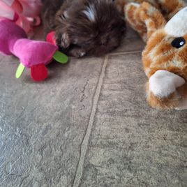 Stormi is a female Shih Tzu. Carefully selected as a great representative of her breed, Debbie decided to make her part of their program. Debbie has passed Good Dog’s screening process, which involved a review of their breeding practices, environment, and the mental and physical health of their dogs.