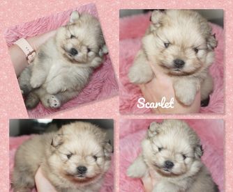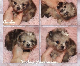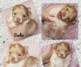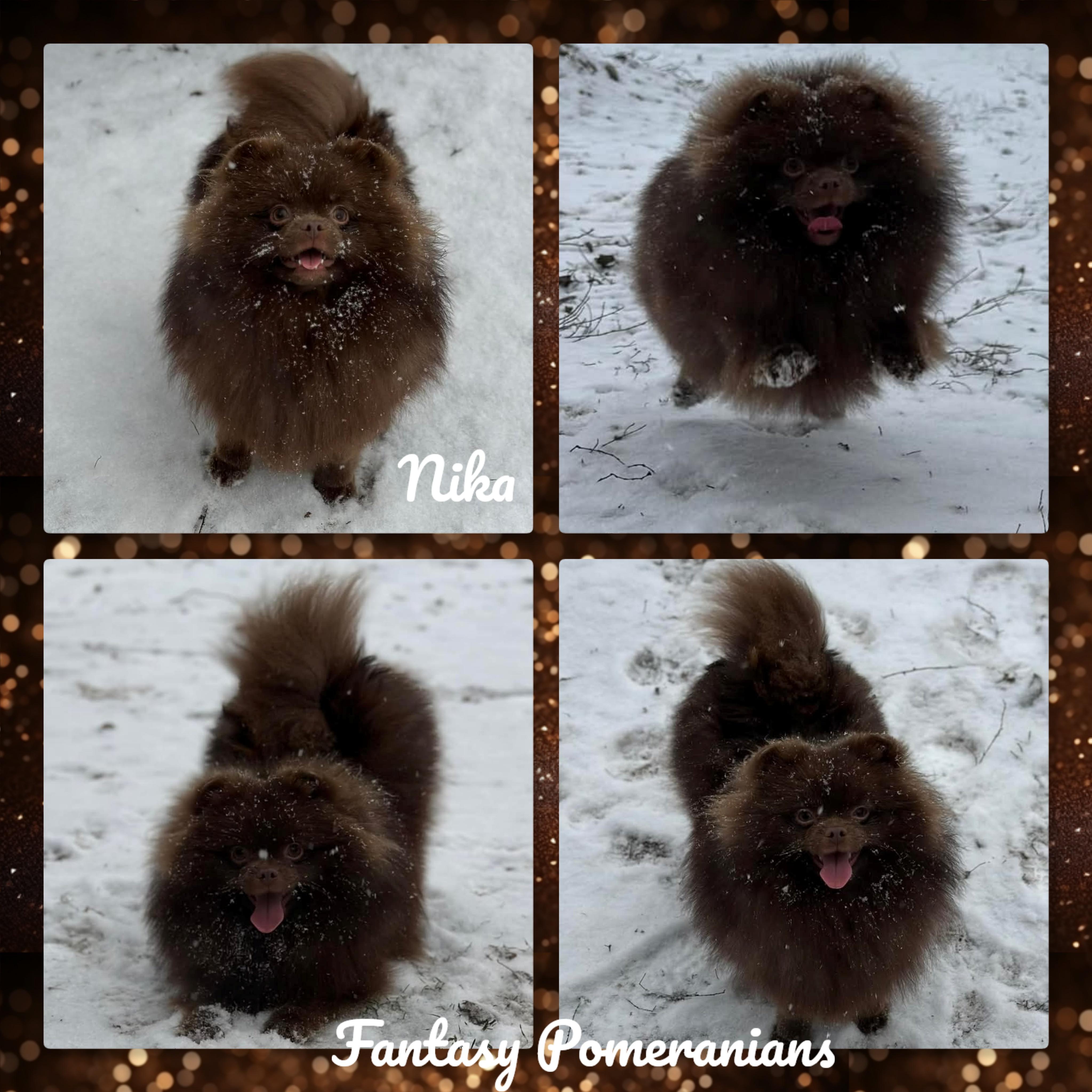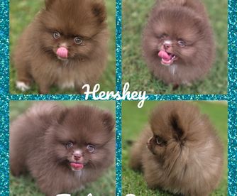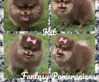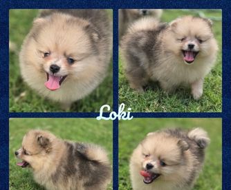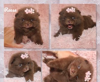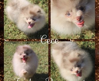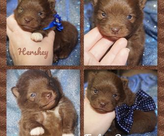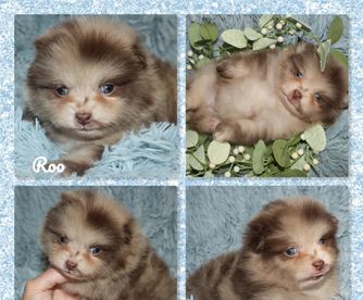 I specialize in Chocolate/tan and Whites for my Pomeranians. I import all of my pomeranians from overseas to get massive coats and shorter noses. My Aussies are from great lines and specifically bred for Blue Merle and Tan and Black Tri.