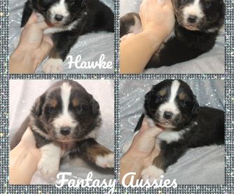 Our Australian Shepherd puppies include blue merle and black tri-color. Pomeranian puppies include black parti, cream, white, chocolate, chocolate merle, chocolate and tan, and black and tan. Colors will vary depending on the parent dogs.