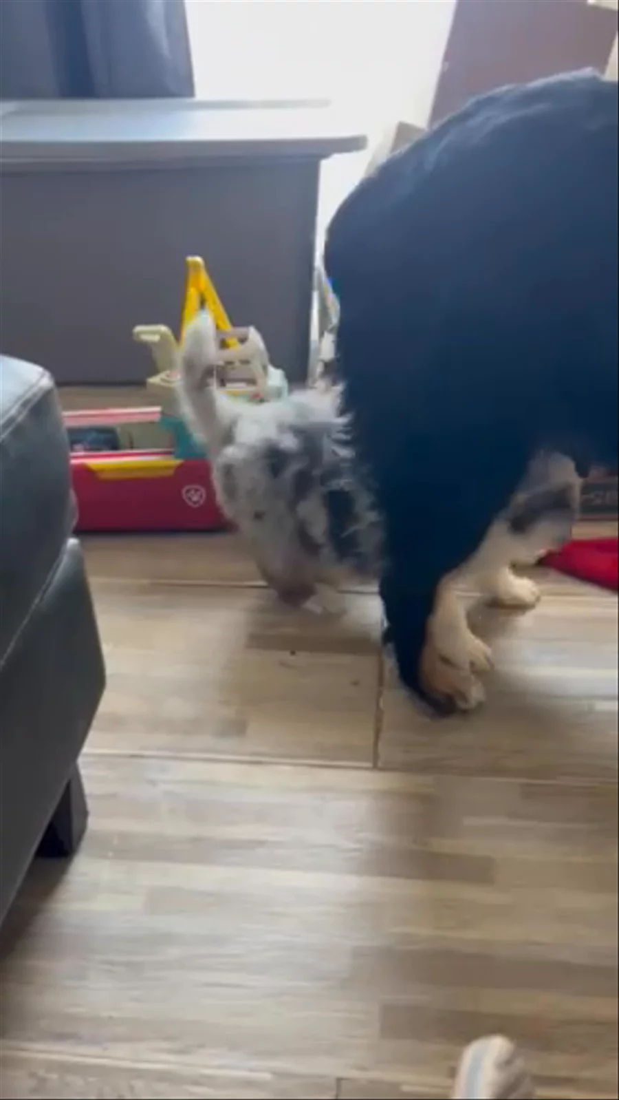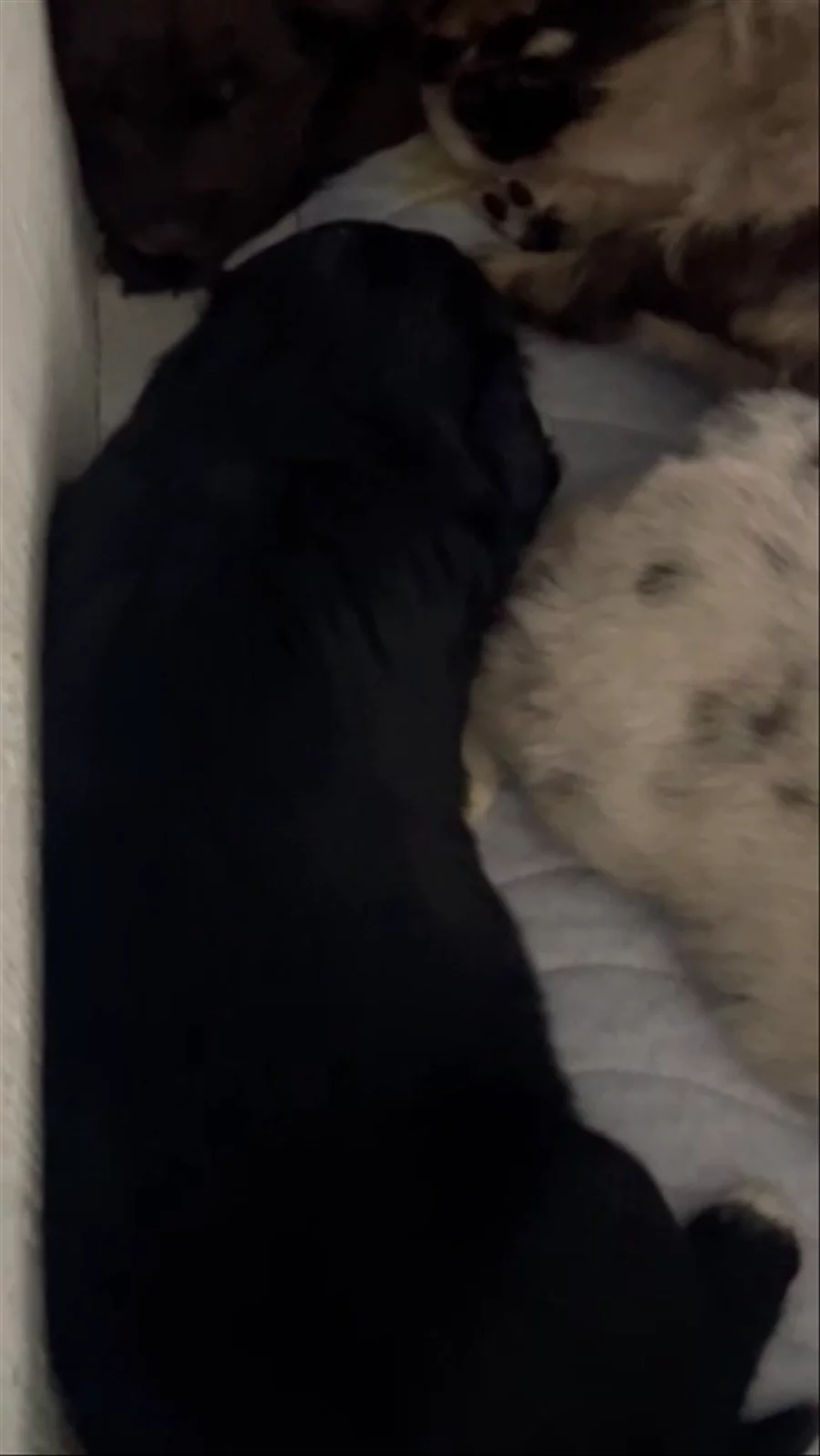 I raise my pups in my home before transitioning them to outdoor farm life. They are handled daily by myself and my kids. They learn to explore the yard with their mom and do chores feeding the horses morning and evening. They play in the haystack, tumble around in the sand pile, and sleep in the shade during nap times.