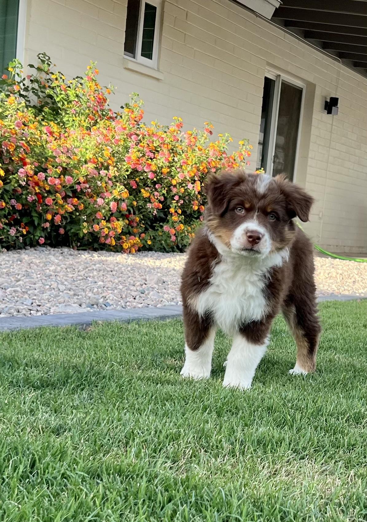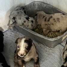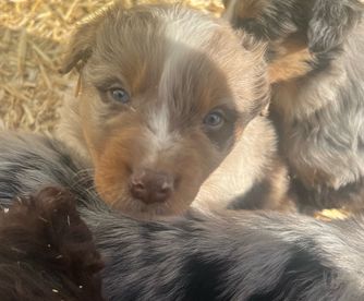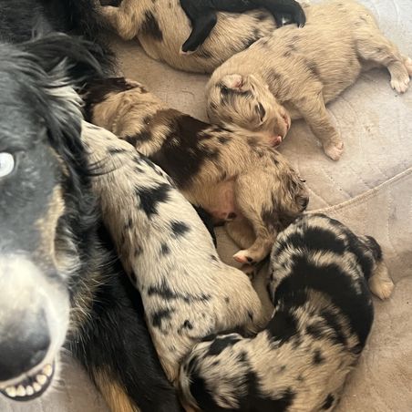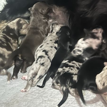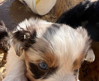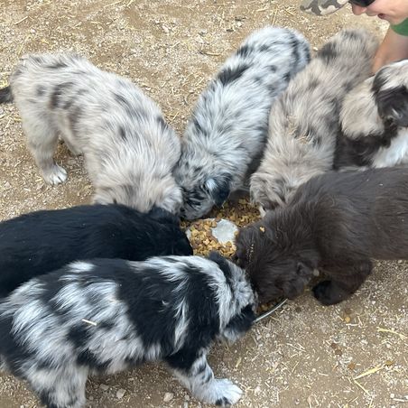 Our puppies include red merle, blue merle, black tri-color, and red tri-color. Colors will vary depending on the parent dogs.