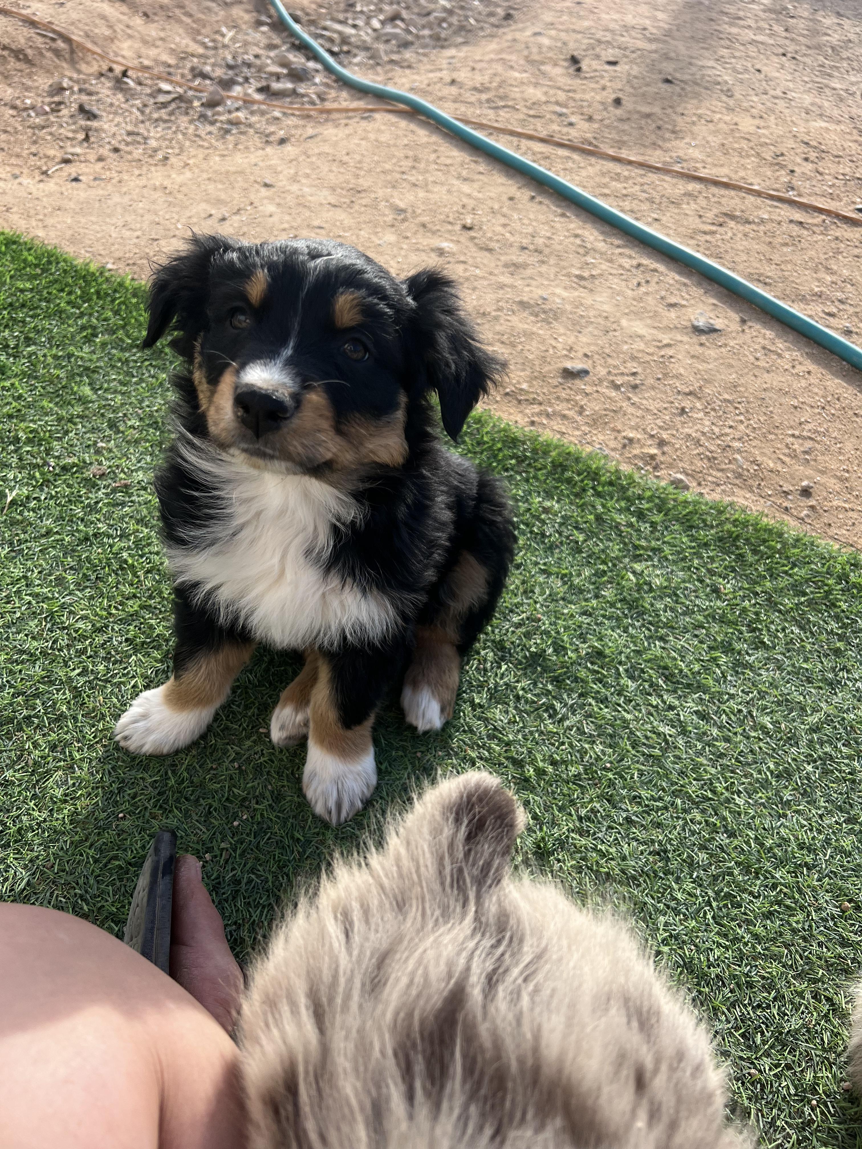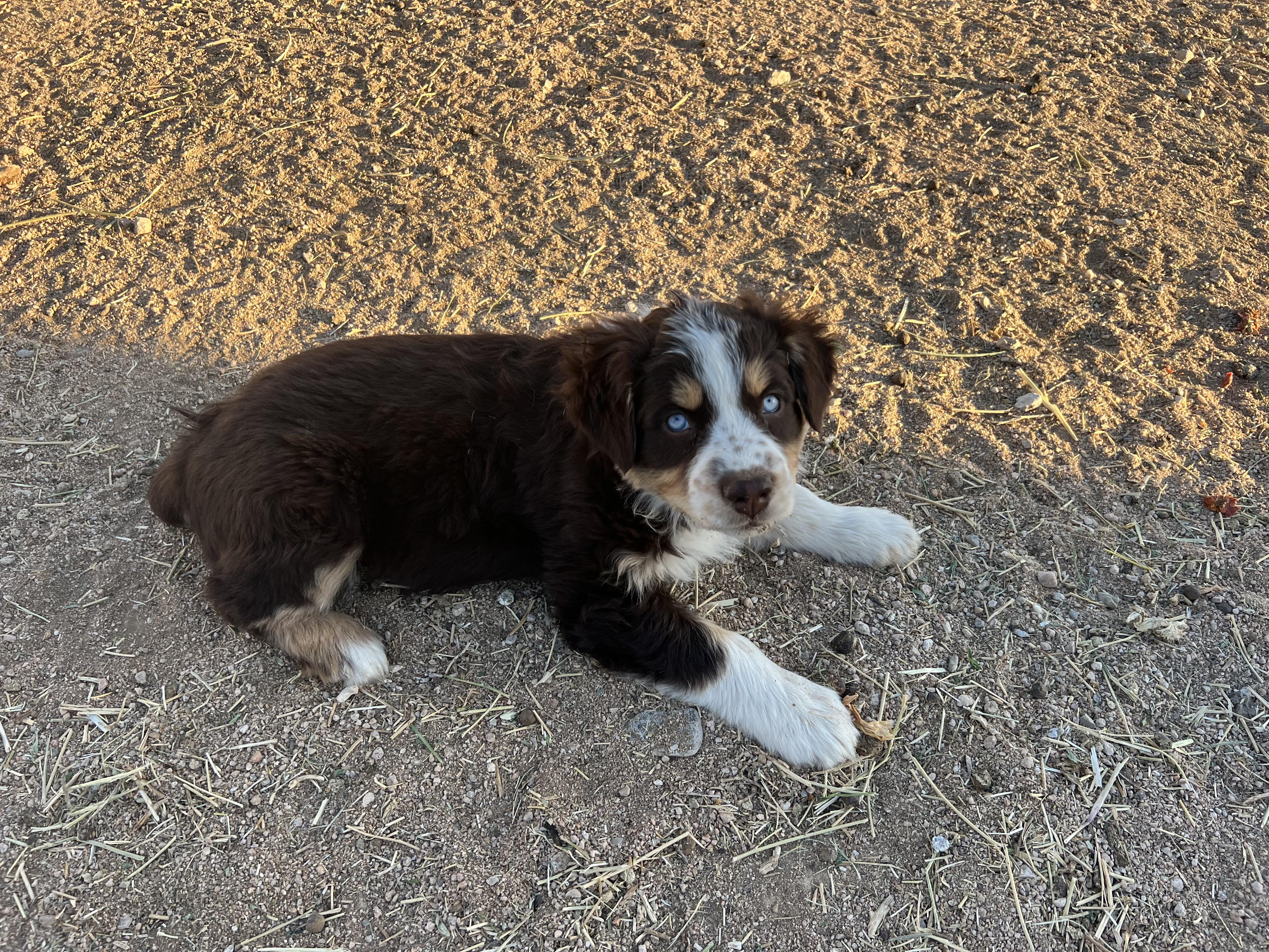I'm Brenda E., the breeder behind Far Out Aussies located in Yucca, AZ. We breed ASCA (Australian Shepherd Club of America) registered, DNA health tested Australian Shepherds. Our Aussie pups are born in our home and socialized with children, cats, horses, and other dogs. We transition to outside play/overnight stays in our enclosed, protected kennel when age appropriate and weather permits. We do not dock tails unless requested by the buyer at birth. Some of our pups have natural bobtails and others have full tails.