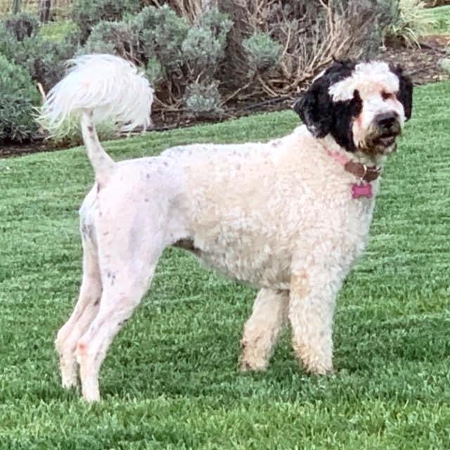 Moo is a female Portuguese Water Dog. Carefully selected as a great representative of her breed, Gail decided to make her part of their program. Gail has passed Good Dog’s screening process, which involved a review of their breeding practices, environment, and the mental and physical health of their dogs.