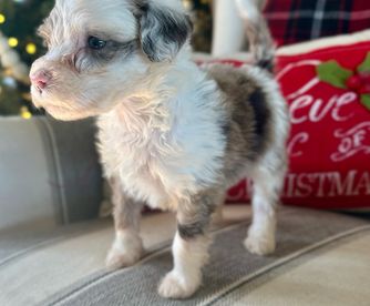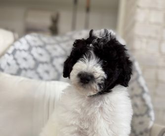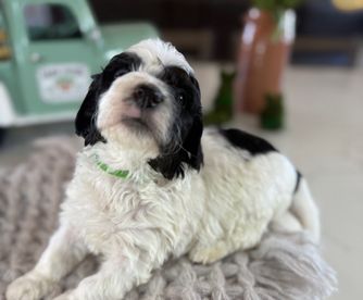 Lola is a female Sheepadoodle. Carefully selected as a great representative of her breed, Kayla decided to make her part of their program. Kayla has passed Good Dog’s screening process, which involved a review of their breeding practices, environment, and the mental and physical health of their dogs.