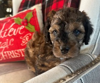 Carly is a female Cavapoo. Carefully selected as a great representative of her breed, Kayla decided to make her part of their program. Kayla has passed Good Dog’s screening process, which involved a review of their breeding practices, environment, and the mental and physical health of their dogs.