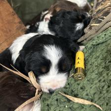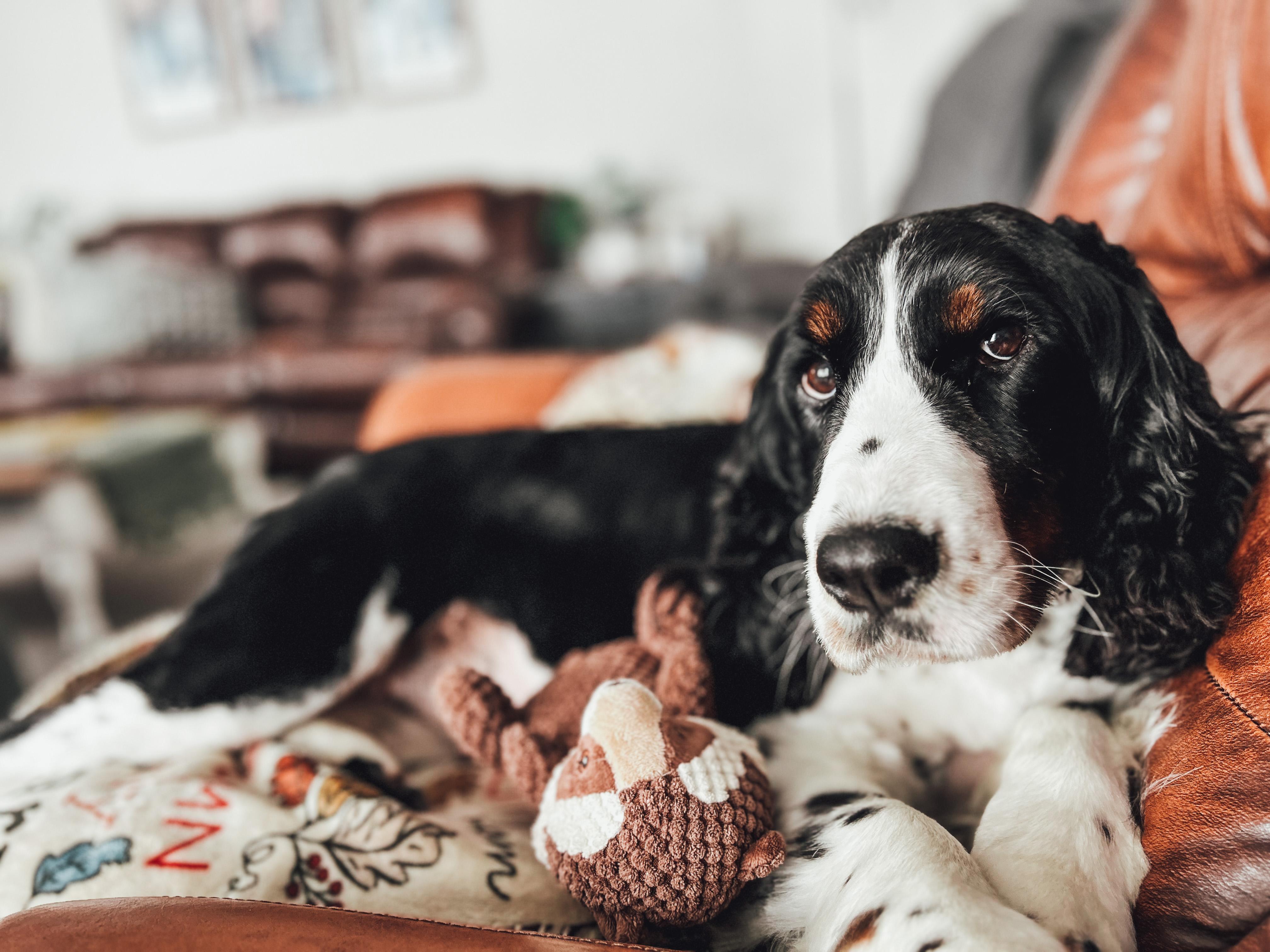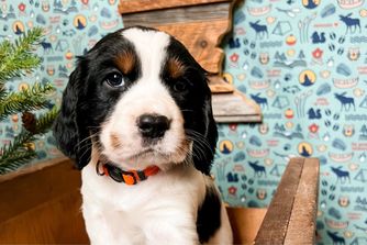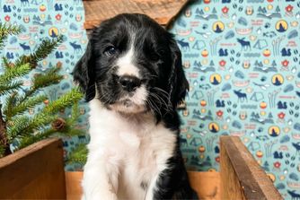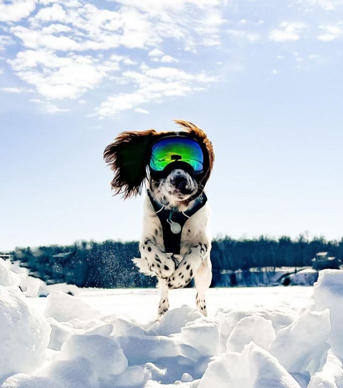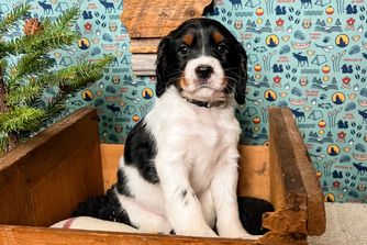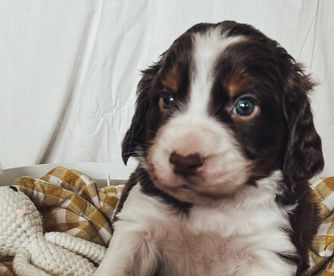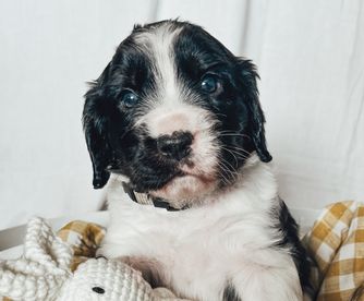 I am a black and white tri-colored Springer. I am part field and bench. I am loyal, calm and well-behaved. I love to relax, cuddle and think I am the most important one in the bunch, the princess! I am sweet and fearless and would do anything for you. I like to sit at your feet or play with my four fur sisters, who are Labrador Retrievers. I am the most energetic member of our fur family. If you can’t find me, just look to the meadow and wait a few seconds. You will probably spot my head springing up as I frolic through the grass chasing up birds and butterflies. I am extremely smart and my number one love in the whole world is going to the lake to swim. And if you've met me, you'll agree . . . I do indeed have the cutest wigglebutt you will ever see!