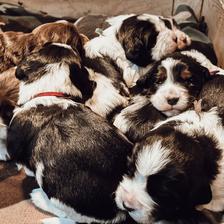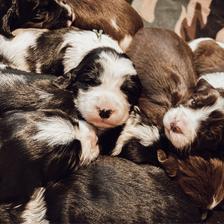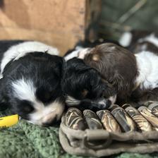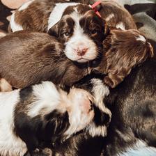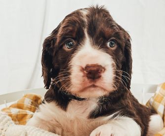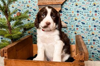 Our English Springer Spaniel puppies include black white and tan, liver white and tan, liver and white, and black and white. Labrador Retriever puppies include black, chocolate, and yellow. Colors will vary depending on the parent dogs.