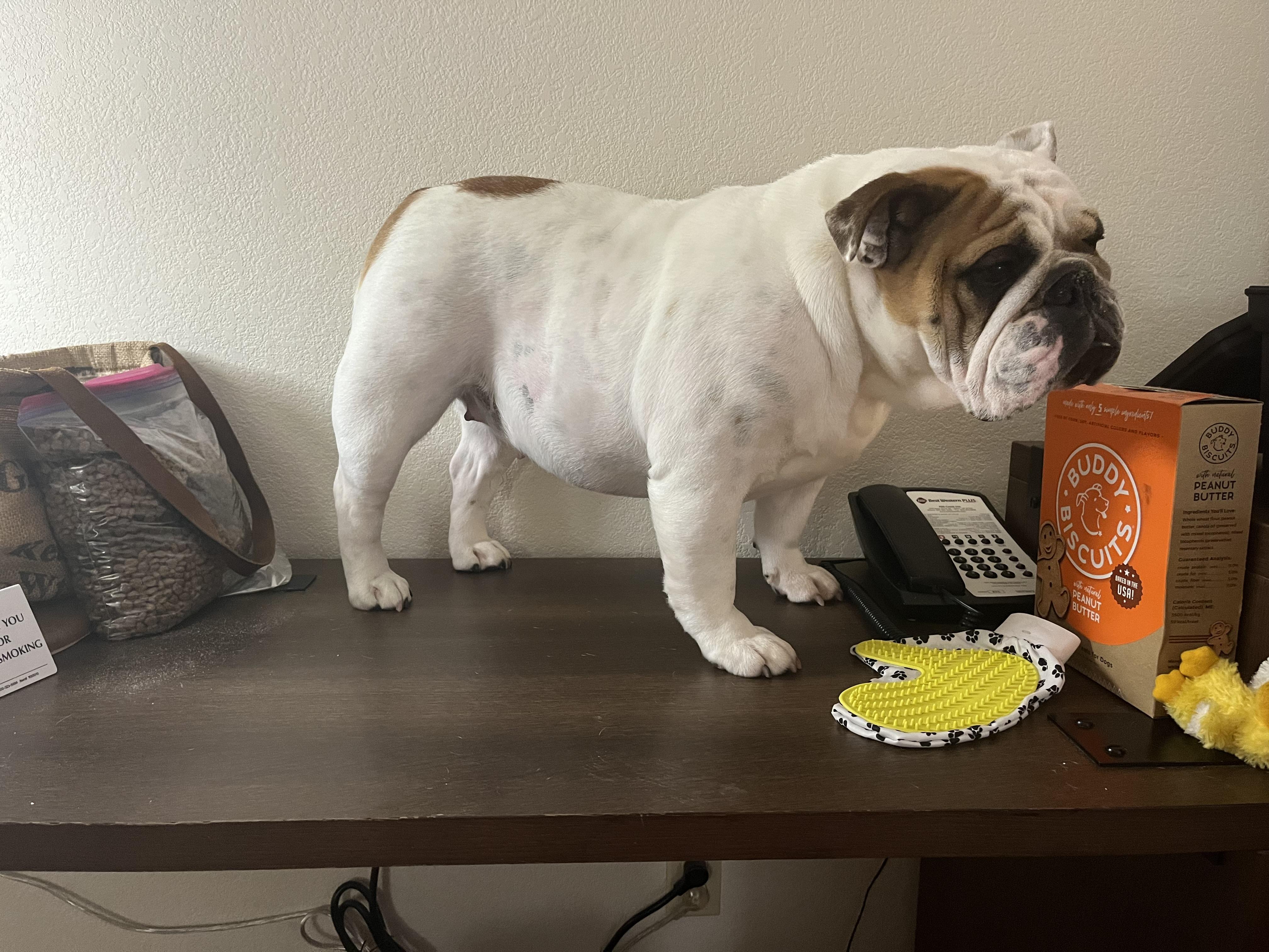 Rudy is a male Bulldog. Carefully selected as a great representative of his breed, Juli decided to make him part of their program. Juli has passed Good Dog’s screening process, which involved a review of their breeding practices, environment, and the mental and physical health of their dogs.