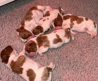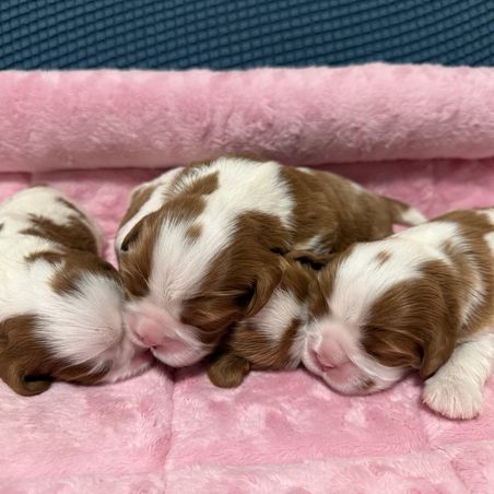 Our puppies include blenheim and tri-color. Colors will vary depending on the parent dogs.