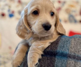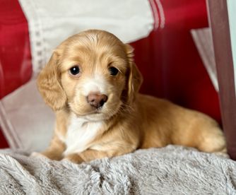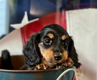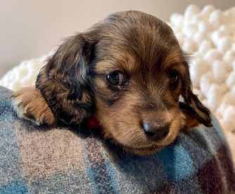 Hoover is a longhair cream AKC registered dachshund who is very protective of his family, both his humans and his 2 ladies. He is very loving, smart and the best cuddler. Hoover was super easy to house train and is currently learning new tricks. His dad is an AKC champion and his mom has won several awards.