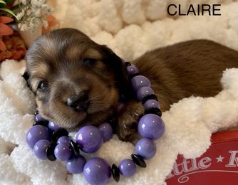 Millie is a longhair shaded red that carries cream, AKC registered dachshund that is the most loving girl ever! She is very playful, loves to shake hands and kiss if you ask her for one. She is currently learning to play dead. Her shaded red hair is the softest you will ever feel. She is also very nosey and follows us all over the house. LOL. She will accompany you to the restroom every time. She's really adorable and so sweet!!