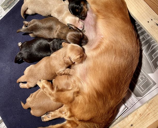 Our puppies include cream, red, black and tan, and black and cream. Colors will vary depending on the parent dogs.