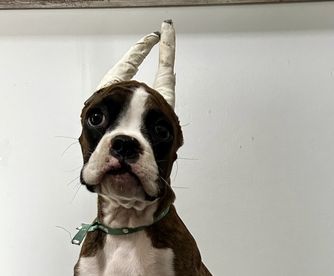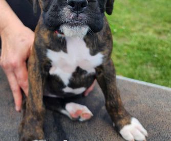 HB is a male Boxer almost 5 years old. Carefully selected as a great representative of his breed, Amber decided to make him part of their program. Amber has passed Good Dog’s screening process, which involved a review of their breeding practices, environment, and the mental and physical health of their dogs.