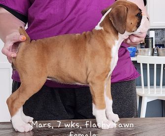 Our puppies include fawn and brindle. Colors will vary depending on the parent dogs.