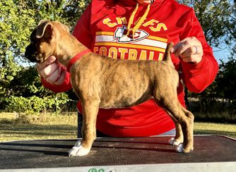 I'm Amber G., the breeder behind FarMore Boxers located in Winchester, KS. I am a small hobby breeder with a passion for the health and continuation of the breed. Promoting the preservation of purposefully bred Boxers. Through selective breeding and conformation showing events to define and refine the breeding program.