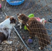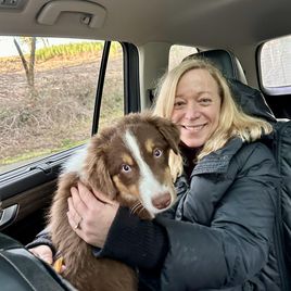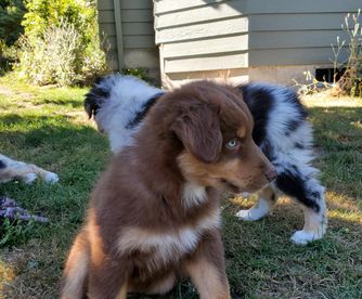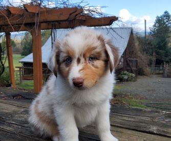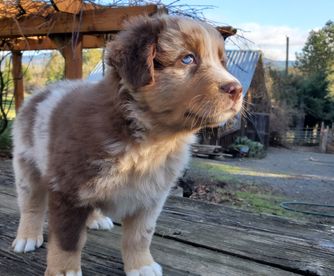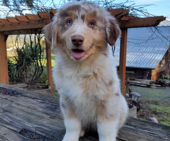 I'm Lori S., the breeder behind Farmstead Aussies located in Cottage Grove, OR. We at Farmstead Aussies responsibly breed health-tested parents offering puppies who are less likely to have inherited diseases like hip dysplasia, bad elbows, and undesirable genetic diseases. Make an appointment to visit the farm and meet your new Aussie family member!