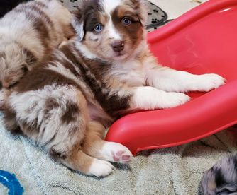 Our puppies include red & white, black & white, black, red merle, blue merle, red, black tri-color, and red tri-color. Colors will vary depending on the parent dogs.