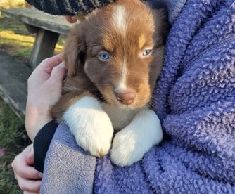 Lori is a great dog breeder/lover. I could tell upon meeting Lori that she takes great care of her Aussie pups. Lori had all of my new puppy, Grace's, vet records organized and in a folder. Lori provided some new toys and a towel with Grace's litter mates aromas for us to go home with. I would definitely recommend buying an Aussie puppy from Lori, as she takes the utmost care in her young and old Aussie doggies.