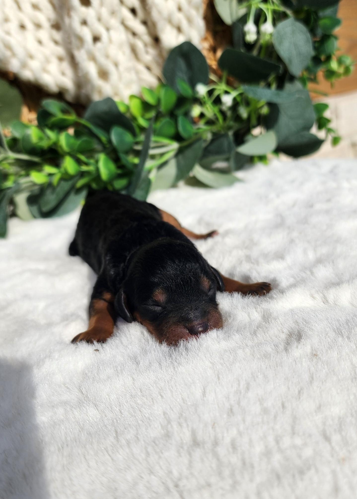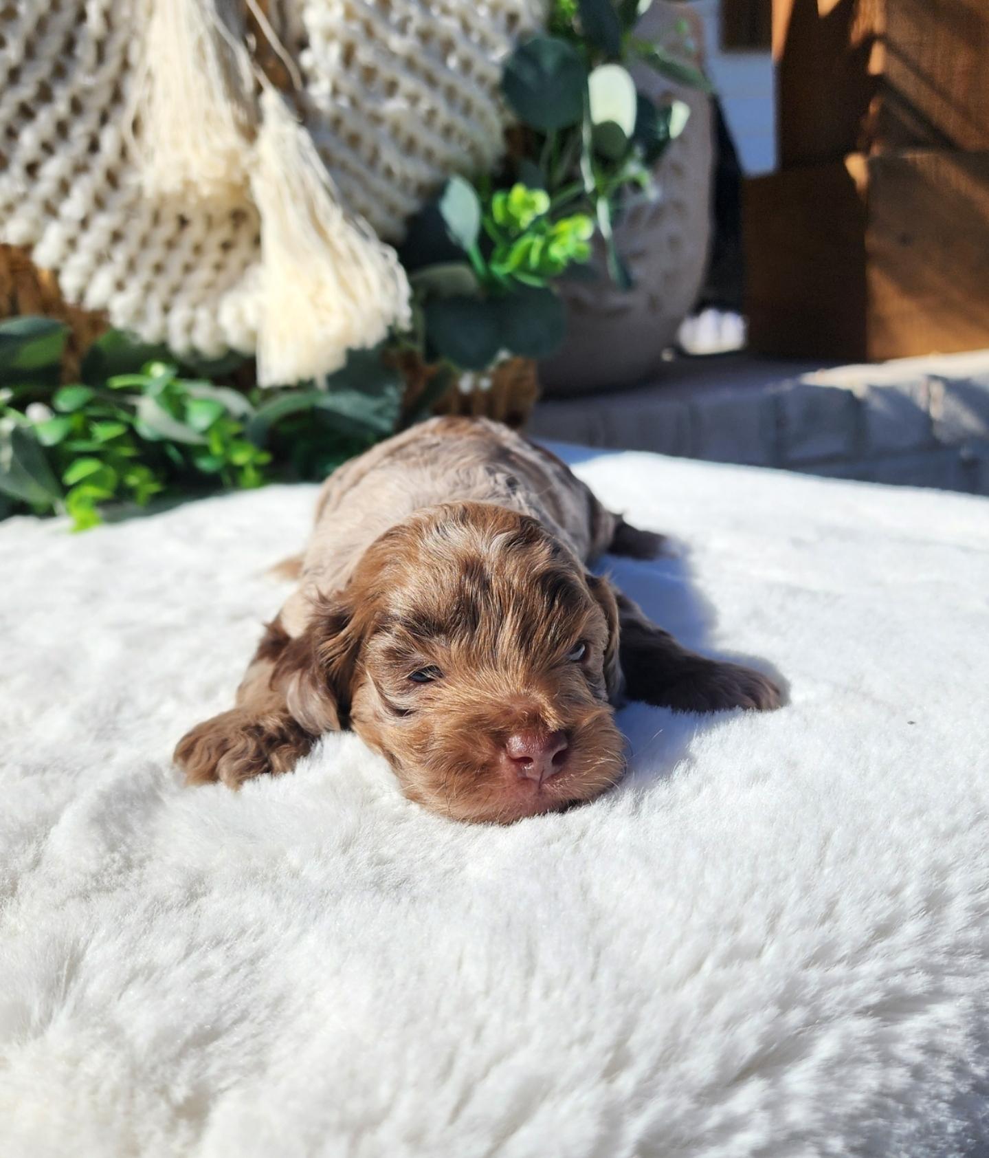 Michaela was a joy to communicate with about my sweet puppy Jackson. I have had him for 1 week now and love him so much! She is very knowledgeable and shared her expertise with me as a new aussiedoodle owner. Super quick in responses, raisinsing a healthy pup, well socialized, and honest in our communications. I highly recommend her services as a breeder!