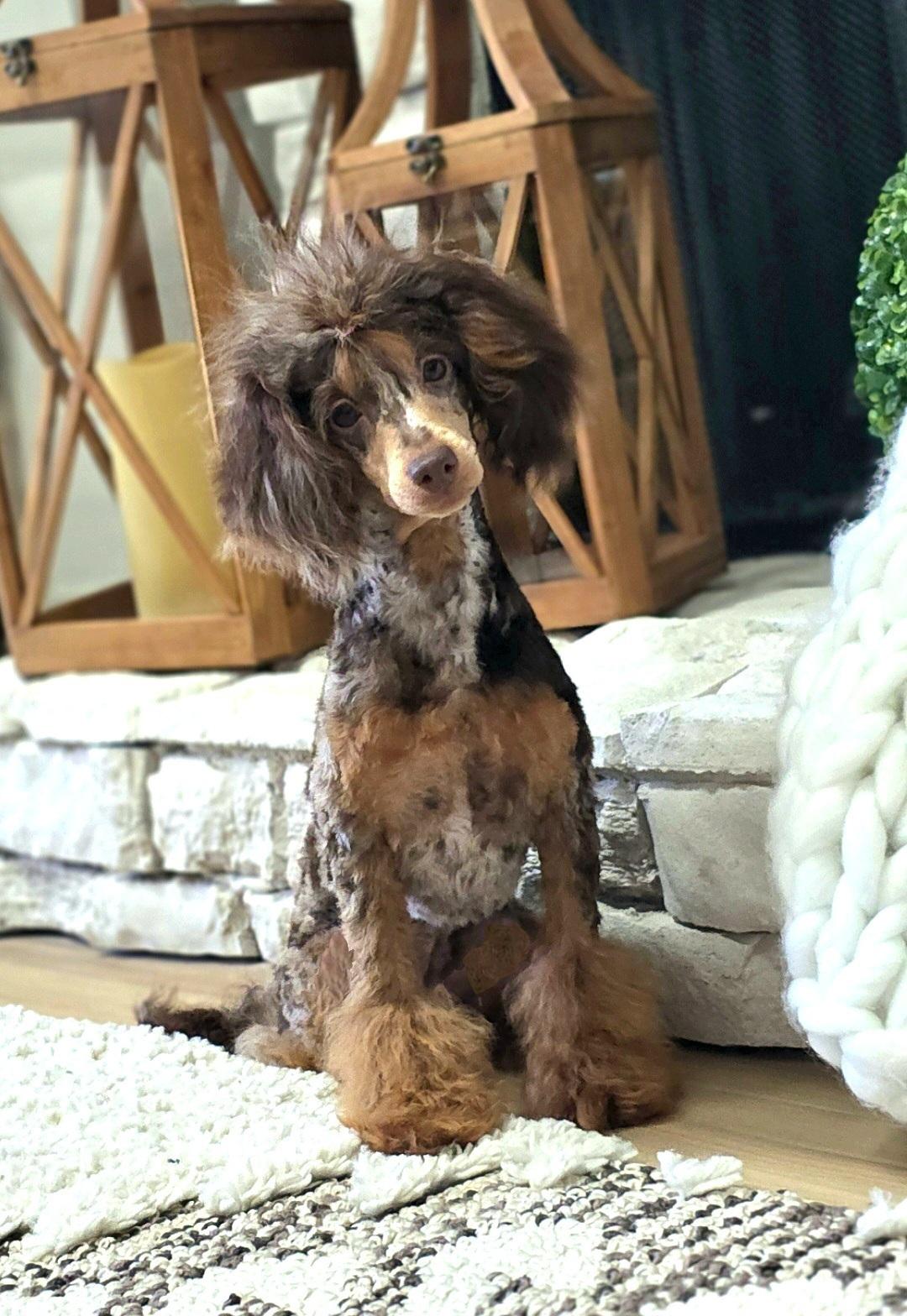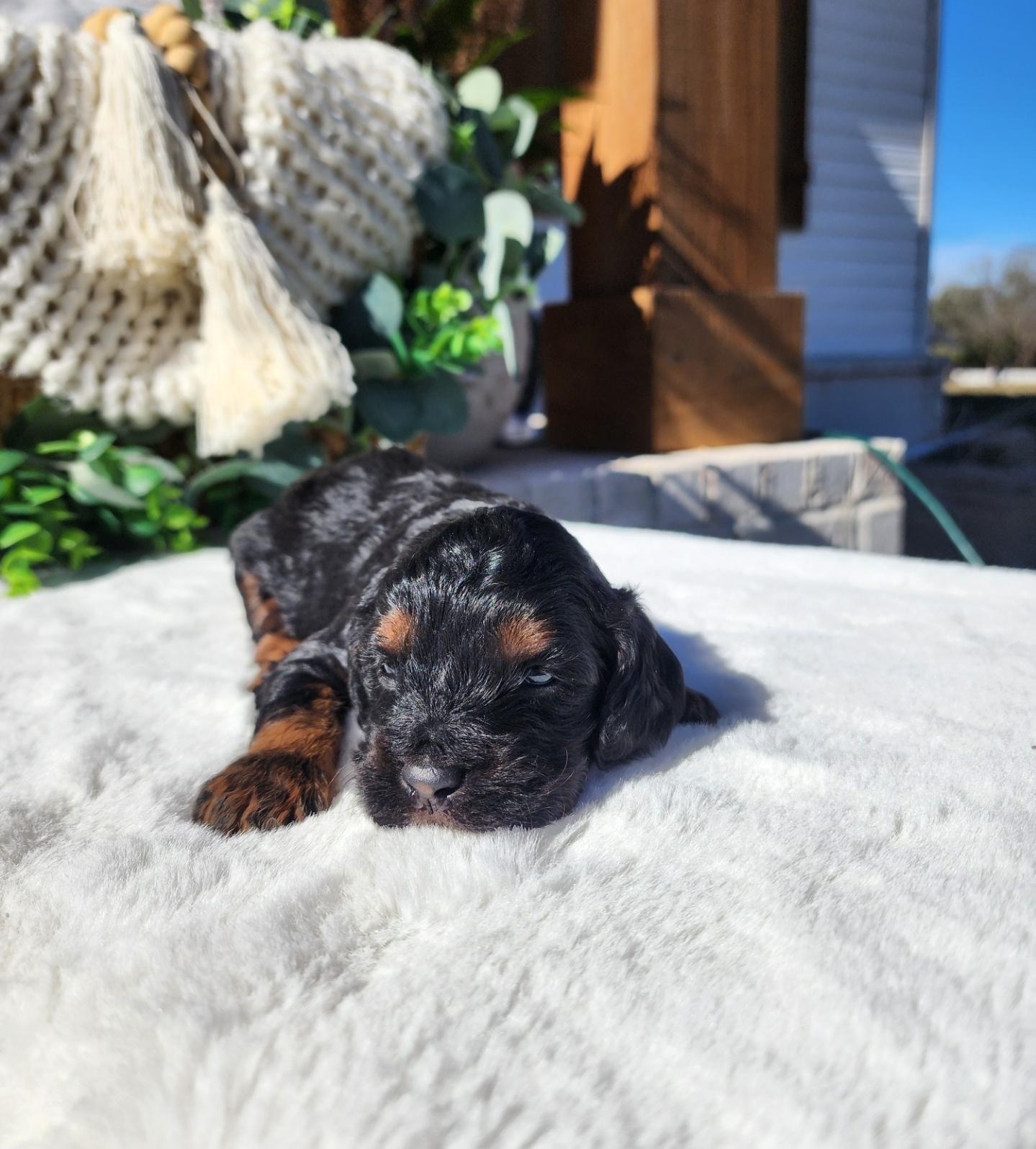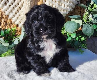 Our Goldendoodle puppies include apricot, red, and black. Havapoo puppies include chocolate, gold sable, chocolate sable, white, cream, black and tan, and black. Cavapoo puppies are red. Aussiedoodle puppies include blue merle, red merle, black phantom, and red phantom. Bernedoodle puppies include tri-color and phantom. Poodle puppies include apricot, black, brown, red, and phantom. Colors will vary depending on the parent dogs.