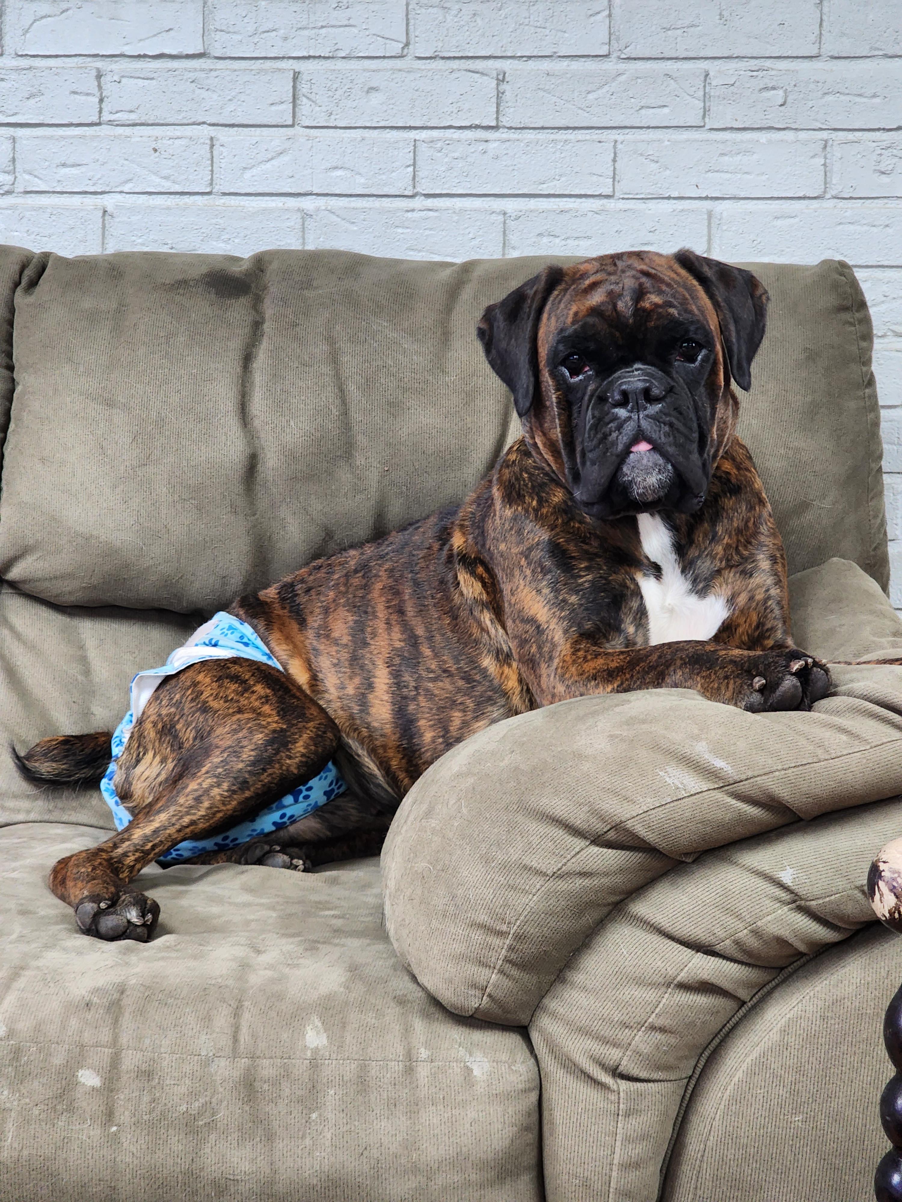Pickles is a male Boxer. Carefully selected as a great representative of his breed, Diana decided to make him part of their program. Diana has passed Good Dog’s screening process, which involved a review of their breeding practices, environment, and the mental and physical health of their dogs.